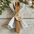 Dieses sorgfältig arrangierte Geschenkset ist die perfekte Überraschung für alle, die das Kochen und stilvolle Servieren lieben. Das hochwertige Salatbesteck aus echtem Olivenholz besticht durch seine einzigartige, mediterrane Maserung und liegt wunderbar in der Hand. Schön drapiert auf einem klassischen Geschirrtuch und abgerundet mit einem liebevollen "Frohe Ostern"-Holzanhänger, ist dieses Set bereits fertig zum Verschenken. Ein Stück Natur für das Osternest!